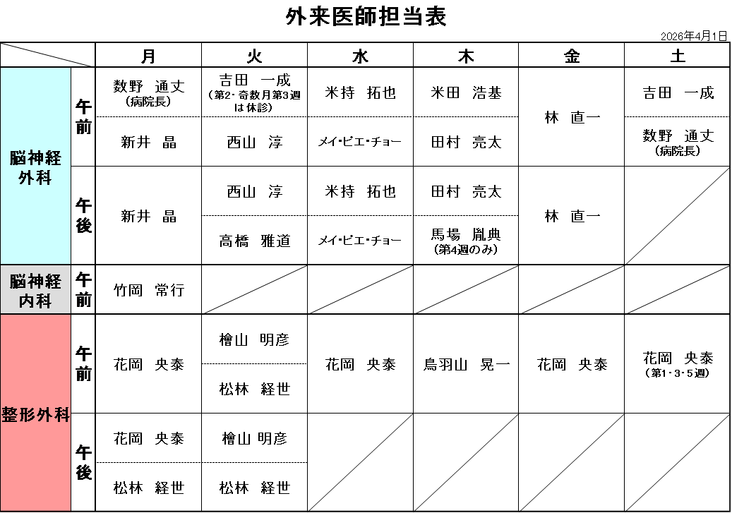 脳神経外科 / 脳神経内科整形外科 / 外科麻酔科 / リハビリテーション科